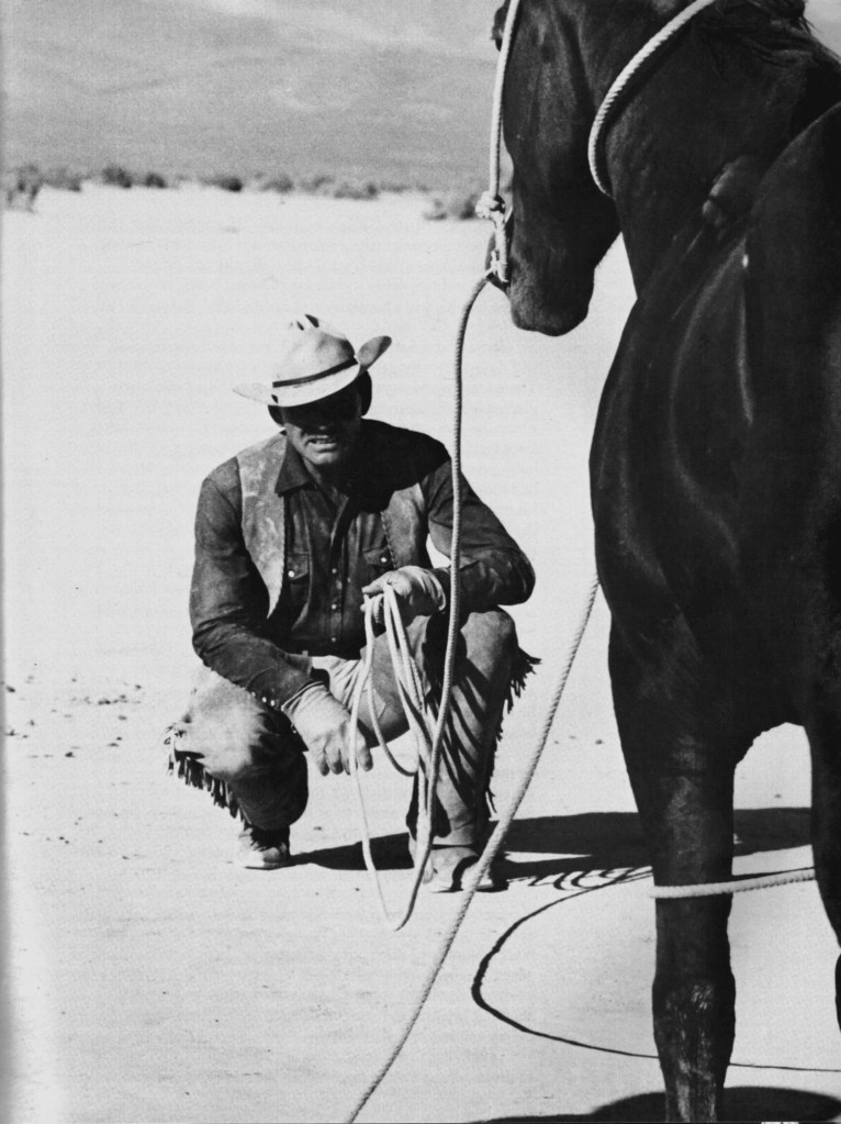 Gable in the beginning didn’t understand the screenplay, which is about modern day cowboys who live on the fringes in and around Reno, a place where everyone gets a quick divorce. The movie follows these misfits and divorcee Monroe as they go to a rodeo and the desert to catch mustangs for pet food.