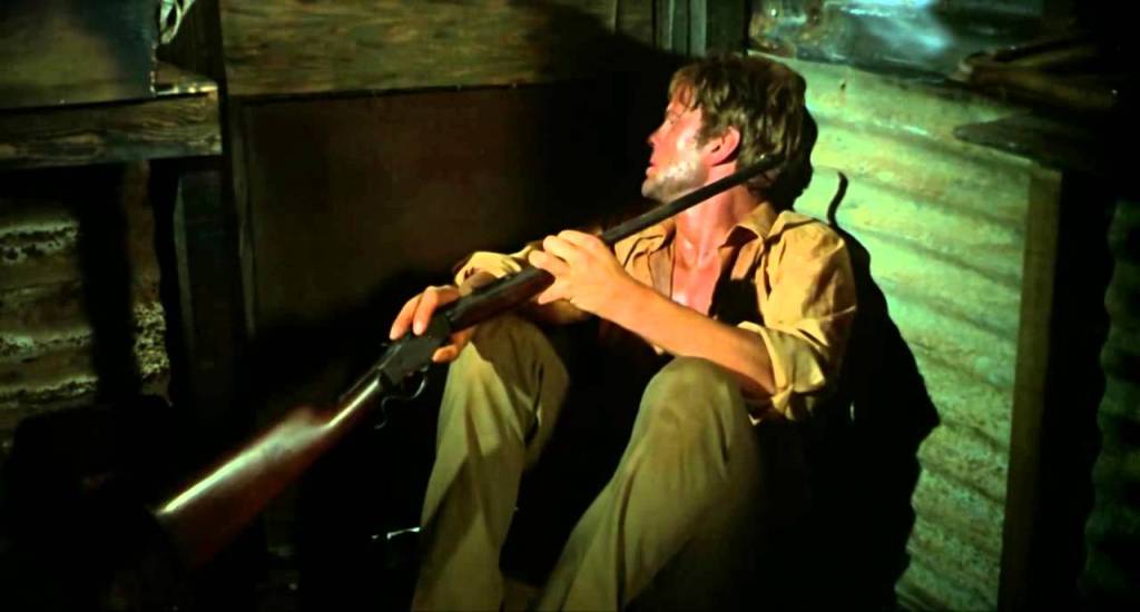 The Wake in Fright title comes from the moment when Bond awakes from what was a blinder of a night alone with the doctor at his tin shed of a home in the middle of nowhere, not knowing whether he had been buggered by the doctor the previous evening. In some ways it really is a horror movie and one ahead of its time. This eventually leads Bond’s character to further degradation in the form of a suicide attempt with a rifle given to him by his new roo shooting mates. He misses his temple and recovers in the local hospital where Rafferty visits him with a statement for him to sign saying it was all an accident. You see, back then, it was still illegal to even try and kill yourself. So shady Rafferty does his mate a favour…