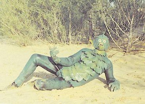 We also glimpse the creature which is very similar to the costume used in Swamp Creature and the one that was used again in the final Azalea It’s Alive. The suit is cheap, practically made out of a wet suit with ping pong balls used for eyes. It’s halfway between Creature from the Black Lagoon (1954) and Paul Blaisdell’s (1927-83 stomach cancer) She Creature creation.