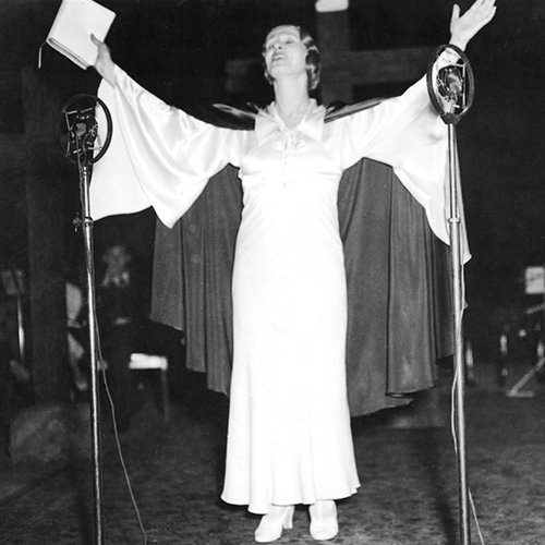 In real life, Aimee condemned theatre and films as “the devil’s workshop” and yet she employed cinematic and theatrical methods to avoid her sermons being dreary. She also gave serious messages in a humorous tone to also alleviate boredom. Worshippers would be spellbound as she spoke for over an hour and at her peak used a reported 50-piece band.
