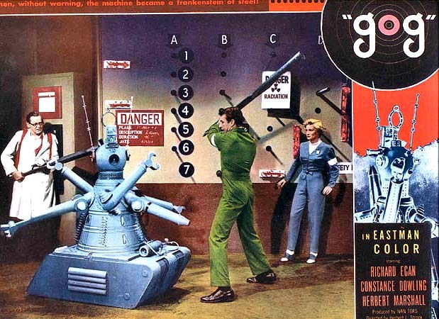 The title of the film Gog comes from the Old Testament as does Magog. They are the names of two robots in the movie, which is set in an underground complex in New Mexico, a place apparently impenetrable to nuclear blast. However, it is not safe from an invisible enemy which is causing deadly malfunctions in the science labs and killing off key staff.