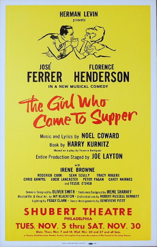 How do you think he was? (laughs) He was a fantastic pro… He was called The Master and it was for very good reasons… It was a very interesting experience… It was a play called The Girl Who Came to Supper… it was based on The Sleeping Prince, a Terence Rattigan (1911-77 bone cancer) piece and Herman Levin (1907-1990), the producer of My Fair Lady… and they got Harry Kurnitz (1908-68 heart attack) to do the script and they got Mr Coward to do the music and so it was a terrific experience … we were in Philadelphia as part of the out of town tour…