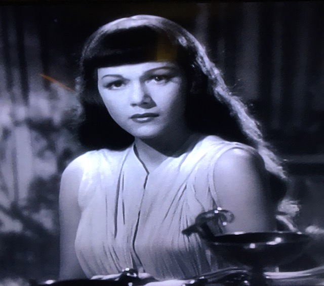 The casting of Montez, Sabu and Jon Hall clicked and the three of them appeared together again in another Technicolor film White Savage (1943). That one is ordinary when viewed today and even Arabian Nights suffers from being dated today. Montez and Hall were then cast in Ali Baba and the Forty Thieves (1944) with Turhan Bey (1922-2012 Parkinson’s disease) replacing Sabu. This one is rather run of the mill as well but they were all in Technicolor and filled a need in the hard times of World War Two. She then made Gypsy Wildcat (1944) with Hall which also doesn’t demand the attention too much but, hey, they’re not complicated and hard-bitten mysteries we’re watching here. The thing is about these movies is they probably played army bases and war ships and so the music drones on as if to drown out the post-traumatic stress or foreboding in the heads of the troops while others took note of Montez and fantasised. Hall also appeared again with Bey and Montez in Sudan (1945) which is probably their best movie in terms of hokum set back in B.C. as it is set around the time of the pharaohs with everyone dressed appropriately. Sabu would appear again in the delayed black and white production of the thriller Tangier (1946). Montez fails to pass muster in the kind of noir-ish Tangier as an actress without Technicolor and the film is forgettable apart from a climax where an elevator cable snaps and it plunges down into a hotel lobby.