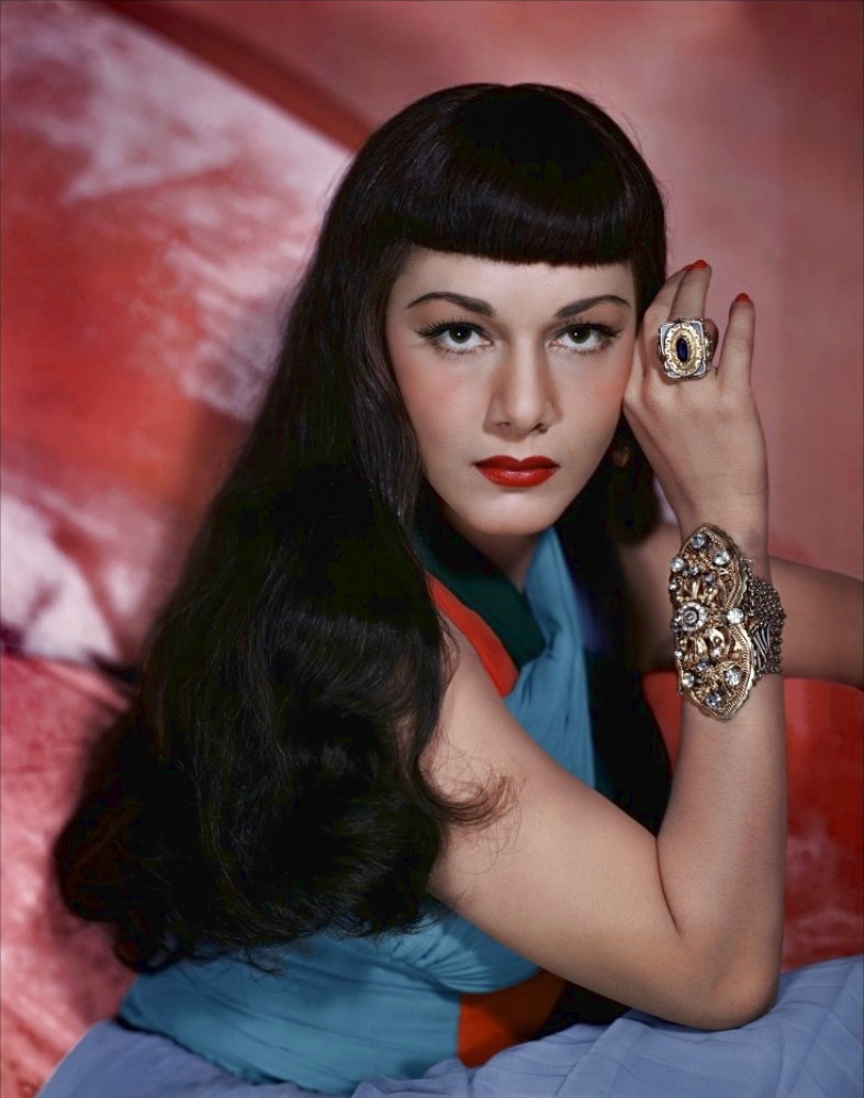Early in her career, Montez invented a fictional fiancée from the Royal Air Force named Claude Strickland as part of a publicity stunt around the time of her first success which was a western called Boss of Bullion City (1940). It was part of her plan to conquer Hollywood which included creating her own fan club and the buzz surrounding it. But it wasn’t until the Arabian Nights (1942), that finally Montez fit the role of movie star albeit a B-grade one… It goes to show what three-strip Technicolor could do – that luminous dreamlike colour process which was commonly used in the 1940s and even to this day.