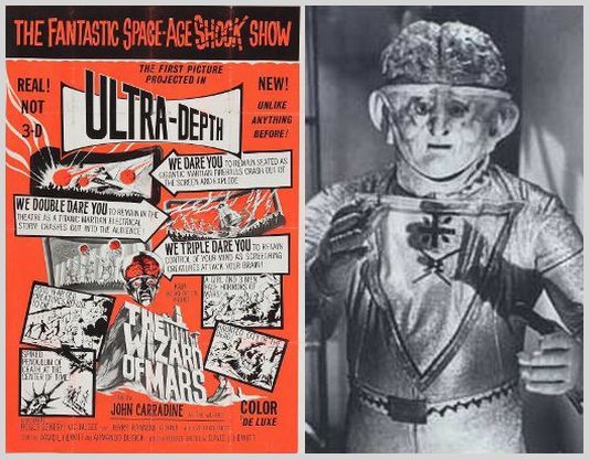 Carradine did one day’s shoot for Wizard of Mars and Al Adamson (1929-95 murdered) used footage for the film in Horror of the Blood Monsters (1970). Cast members included Roger Gentry (1934-2013 undisclosed) from Hewitt’s Gallery of Horror (1967), Vic McGee (no info) who wrote for tv show Welcome Back Kotter, Jerry Raddow (1934-) and former Las Vegas showgirl Eve Bernhardt (1930-).