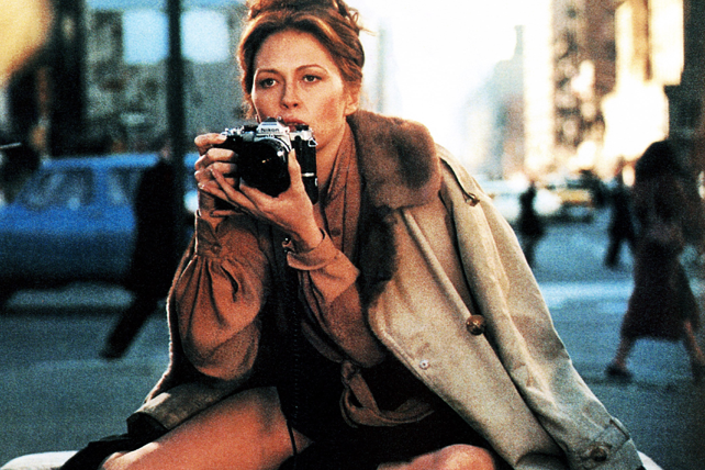 While taking photos of a shoot which captures perfectly 1970s New York, she sees her late night friend on the phone stalked and freezes with her eye in the camera finder.